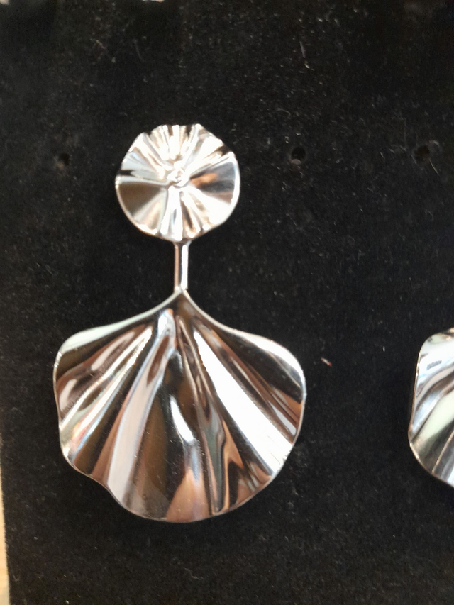 Pendientes de acero largos, con cierre de mariposa. Tienen forma de concha.