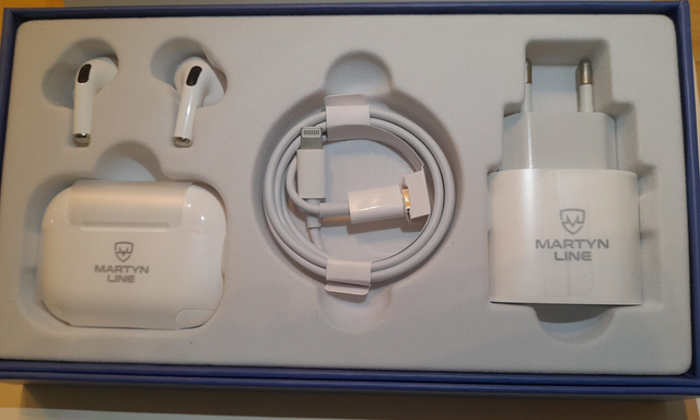 Incluye: auriculares blancos, cable tipo iphoe de carga, cargador a red, funda para auriculares.
